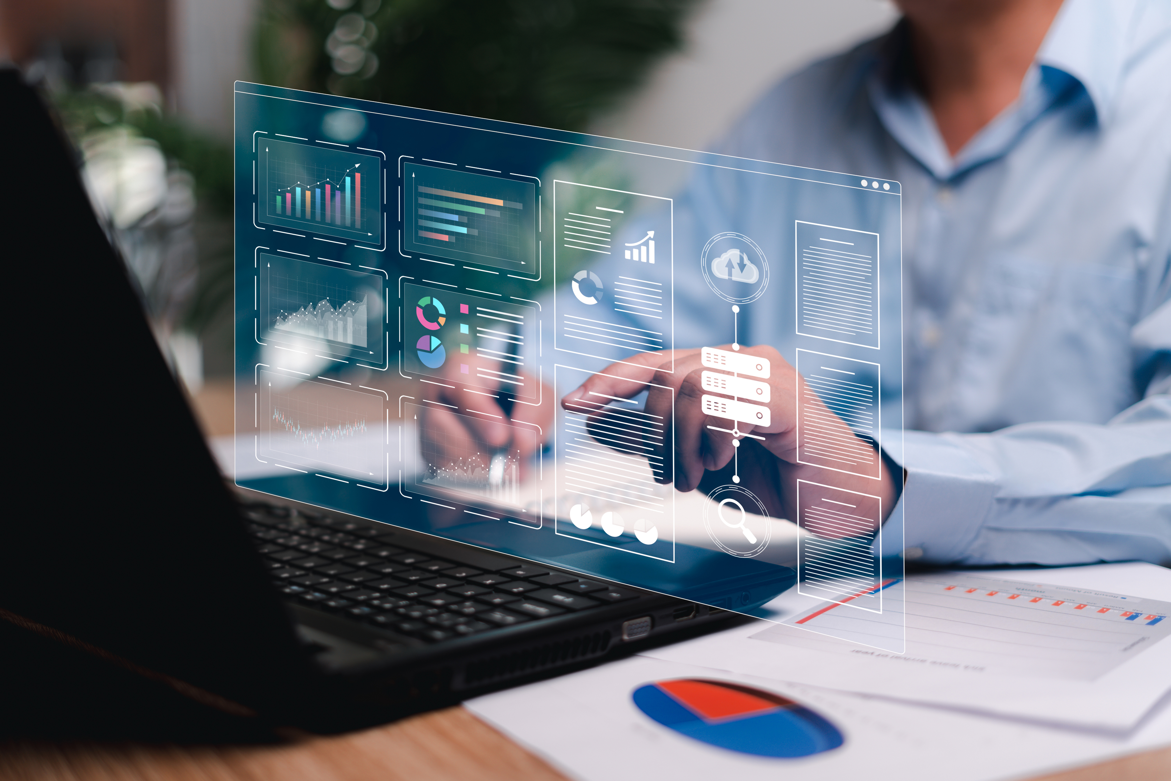 Businessman use laptops to work on smart digital marketing analysis and data management, Business strategy concept, Graph and marketing data Digital show on virtual screen, data management Businessman use laptops to work on smart digital marketing analysis and data management, Business strategy concept, Graph and marketing data Digital show on virtual screen, data managementand Management